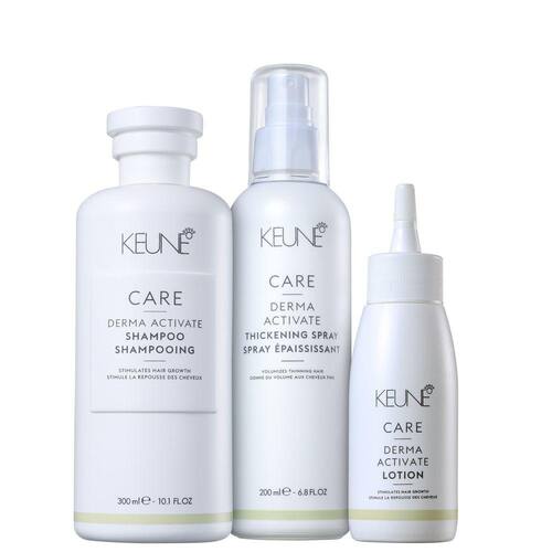 Kit para cabelos com queda ou ralos. Kit Keune Derma Activate Trio encorpa os fios com o aumento da resistência durante o crescimento.