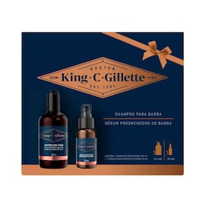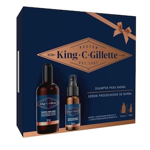 Desfrute do novo kit para barba King C. Gillette! Este kit inclui: 1 Shampoo para barba e 1 Sérum Preenchedor de Barba. O Shampoo para Barba King C. Gillette remove impurezas e oleosidades, deixando uma sensação refrescante. Faz muita espuma em apenas segundos e você pode enxaguar facilmente com água, deixando sua barba com uma sensação de maciez, graças a seus agentes condicionantes. Tenha a icônica fragrância de King C. Gillette. Seus ingredientes como óleo de Argan, Abacate, Água de Coco e Mentol são especialmente selecionados para cuidar dos fios da barba. O shampoo é ideal para todos os tipos de barbas. O Sérum Preenchedor de Barba King C. Gillette aumenta o volume de cada fio de sua barba, proporcionando uma aparência visualmente cheia, também deixa a pele com uma sensação de frescor. Com óleo de argan, cafeína, niacinamida, pantenol e icônica fragrância King C. Gillette. Complete sua rotina de cuidado da barba com o Balm para Barba e o Óleo para Barba King C.Gillette.