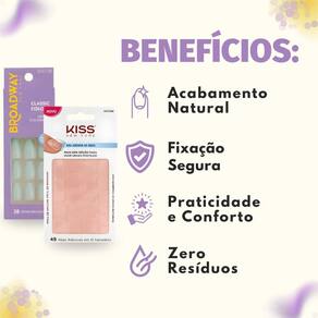 O Kit Kiss New York: Unhas Postiças e Abas Adesivas é a solução ideal para quem busca unhas impecáveis com a praticidade que o dia a dia exige. Imagine ter unhas perfeitas, com um toque de elegância e sofisticação, sem precisar gastar horas no salão. Este kit completo oferece unhas postiças incrivelmente naturais, transformando suas mãos e permitindo que você expresse sua criatividade através de nail arts deslumbrantes. Desfrute da beleza do formato bailarina longo, realçada pela delicadeza da cor, e conquiste um visual moderno e elegante em instantes. Perfeito para mulheres que valorizam a beleza e a praticidade.