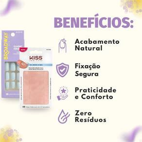 O Kit Kiss New York: Unhas Postiças e Abas Adesivas é a solução ideal para quem busca unhas impecáveis com a praticidade que o dia a dia exige. Imagine ter unhas perfeitas, com um toque de elegância e sofisticação, sem precisar gastar horas no salão. Este kit completo oferece unhas postiças incrivelmente naturais, transformando suas mãos e permitindo que você expresse sua criatividade através de nail arts deslumbrantes. Desfrute da beleza do formato bailarina longo, realçada pela delicadeza da cor, e conquiste um visual moderno e elegante em instantes. Perfeito para mulheres que valorizam a beleza e a praticidade.