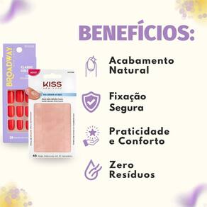 Kit Kiss New York: Unhas Postiças Quadrado Curto Vintage e Abas Adesivas Unhas