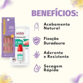 Comece limpando e secando bem as unhas naturais, removendo qualquer resíduo de esmalte ou oleosidade. Escolha o tamanho de unha postiça que melhor se adapta a cada unha natural. Aplique uma pequena quantidade de cola na unha postiça e posicione-a sobre a unha natural, alinhando-a à cutícula. Pressione firmemente por 10-15 segundos até que a unha esteja completamente fixada. Para um melhor acabamento, você pode lixar as bordas e aplicar um top coat para selar e proteger as unhas.