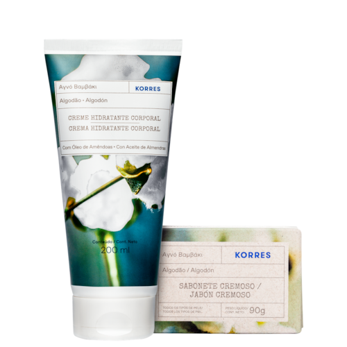 O Kit Korres Algodão Sabonete & Hidratante sua fórmula combina conforto e suavidade para a pele, envolve com o toque sedoso do algodão ao mesmo tempo que amacia e perfuma a pele.