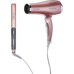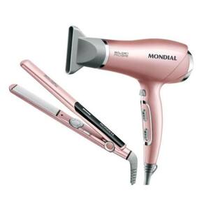 Apresentação do produto: deixar o cabelo arrumado para o trabalho ou criar looks diferentes para ir a um evento fica fácil com o kit kt-83 da mondial. E o melhor é que ele vem completo com secador e chapinha. Um verdadeiro salão de beleza em casa e, que ainda, pode ser levado para onde você quiser. Com esse conjunto especial, você vai ficar linda de forma funcional e prática. O secador conta com revestimento cerâmico; botão liga e desliga; grade de entrada de ar removível e bocal para pendurar. Já a chapinha também é revestida de cerâmica com tecnologia íons e turmalina que garantem um cabelo saudável e cheio de brilho.