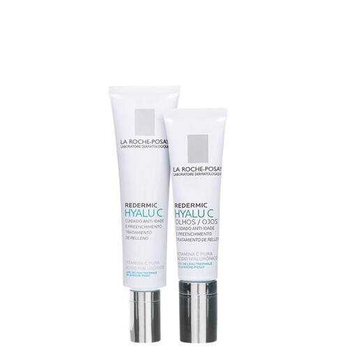 Kit de tratamento anti-idade para todos os tipos de pele. Kit La Roche-Posay Redermic Hyalu C Olhos e Face rejuvenesce ao preencher até rugas profundas, além de melhorar a firmeza e uniformizar o tom.