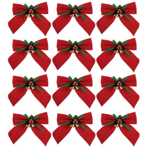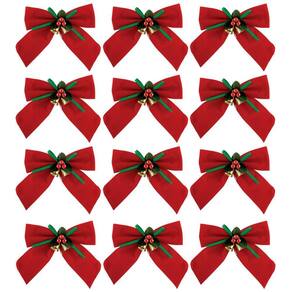 Kit Laço Vermelho Decorado Natal 11x11cm 12 Peças - Magizi