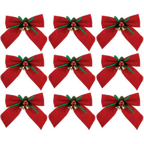 Kit Laço Vermelho Decorado Natal 11x11cm 9 Peças - Magizi