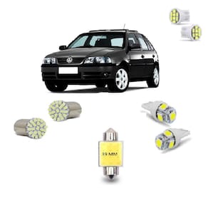 02 x lâmpadas t10 pingo 08 leds - luz de farolete/meia luz 02 x lâmpadas t10 pingo 05 leds - luz de placa 01 x lâmpada torpedo 39mm - luz de teto 02 x lâmpadas 1156 22 leds - luz de ré