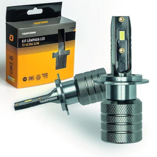 O kit lâmpada led tarponn t2 ultra slim, da linha cyber tarponn, é compacto, versátil e ideal para seu carro. Com acabamento em alumínio de aviação e tecnologia de led coreano csp, oferece alta intensidade luminosa. Resistente a vibrações e calor, seu design ultra slim e suporte removível garantem fácil instalação. Possui dissipador em alumínio para maior durabilidade, iluminação branca fria 6000k e fluxo luminoso de 3000 lumens, sendo aplicável para farol alto e baixo.