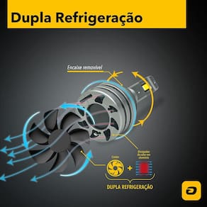 Temperatura da cor: 4000k branco neutro Potência: 50w Tensão: 12 v Fluxo luminoso: 5500 lm/peça Liga de alumínio de aviação 6063 Encaixe: h1 Grau de proteção: ip65 resistente a água Resistência: vibrações e altas temperaturas Temperatura de trabalho: -40º +80º c Dupla refrigeração: dissipador de calor em alumínio + cooler Linha: pro Garantia: 1 ano.