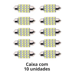 Kit Lâmpada Torpedo de 39mm com 16 Leds 10 unid 12V 6000K Lâmpada LED Torpedo 39mm 16 LEDs Branco Luz de Placa e Teto 12V