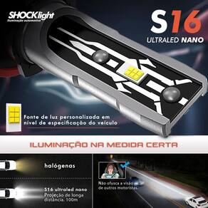Kit Lâmpada Ultra Led H1 Shocklight S16 Nano 6000K 8400Lm