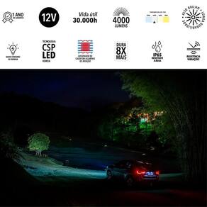 Compacta Fácil instalação Efeito xênon Tecnologia csp led Corpo de liga de alumínio Durabilidade de até 08 vezes mais Tonalidade 6000k Iluminação branca fria Aplicação: farol alto, farol baixo e farol de milha
