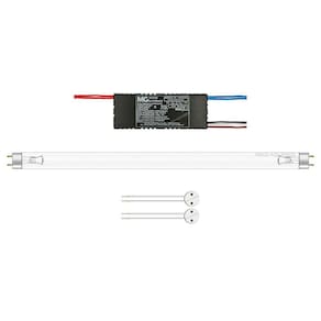 Kit lâmpada uv uv-c 25w tubular t8 germicida para esterilização de ambientes e água + reator próprio para lâmpada uv + par de soquetes