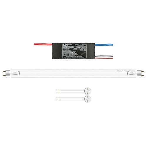 Kit lâmpada uv uv-c 25w tubular t8 germicida para esterilização de ambientes e água + reator próprio para lâmpada uv + par de soquetes