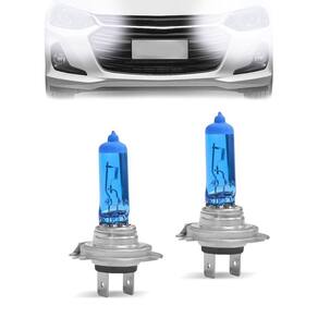 Especificações Técnicas: Par de Lâmpadas Halogena Modelo: H7 Tensão: 12v 1650 Lumens Potência de 55W Temperatura de cor: 8500K Longa Vida Útil Alta durabilidade Vidro de Quartzo com proteção UV Cor: Branco-AzuladoDimensões e peso da embalagem: