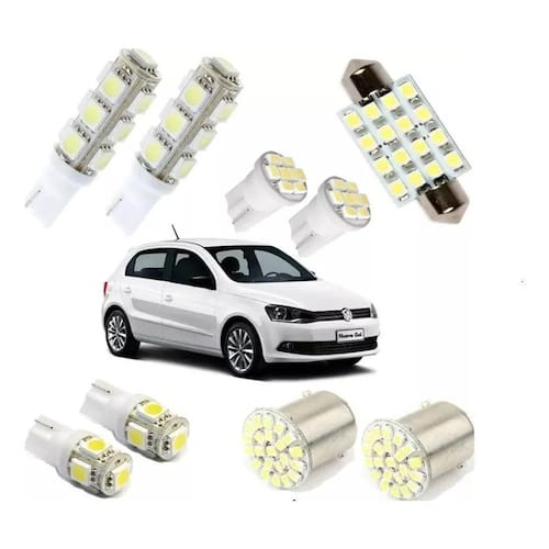 Temos outros modelos disponíveis, como a linha led convencional, linha led premium e linha de lampadas para farois, confira no link a seguir: Compatibilidades Gol g4, g5, g6 e g7 Voyage g4, g5, g6 e g7 Sobre as lampadas em led O led é a abreviação em inglês para diodo emissor de luz. Consiste em uma tecnologia de lâmpadas de última geração, que está gradativamente substituindo as lâmpadas convencionais. Basicamente, é um semicondutor que converte a eletricidade em iluminação de forma mais eficaz, econômica e segura, produzindo mais luz com menor quantidade de energia. Mas as vantagens do led vão muito além disso, quando analisamos fatores como economia de energia, o led consome até 80% a menos que as lâmpadas comuns e com baixa emissão de calor. Sua instalação é super fácil, a grande maioria dos leds não requer nenhuma adaptação extra. É um produto ecologicamente correto, não utilizando mercúrio, nem filamentos metálicos ou substancias tóxicas em sua composição. Deixe seu veículo com visual moderno e inovador com as lâmpadas de led da mfl acessorios. Instalação A instalação é simples basta remover as lâmpadas antigas e inserir cuidadosamente as novas, mas caso não possua nenhum conhecimento sobre elétrica veicular recomendamos levar o veículo a um técnico a fim de evitar qualquer curto circuito no veículo ou queima das lâmpadas. Não nos responsabilizamos por mau uso do produto. Polaridade As lâmpadas de led possuem polaridade correta, portanto, caso a lâmpada não acenda é necessário inverter a mesma no soquete para funcionamento. Lojistas Faturamento para cnpj de fora do estado de , com finalidade de , pode estar sujeito a cobrança de icms-st, a ser calculado após a compra e acrescentado ao valor do pedido. Conteúdo do kit 02 x lâmpadas t10 pingo 13 leds 4,2cm x 1,2cm - luz de farolete / pingo meia luz 01 x lâmpada torpedo 16 leds 39mm 3,8cm x 1,2cm - luz de teto central 02 x lâmpadas t10 pingo 08 leds 1,7cm x 1,2cm - luz de teto leitura 02 x lâmpadas t10 pingo 05 leds 2,8cm x 1,2cm - luz de placa 02 x lâmpadas p21w 1156 1 polo 22 leds 2,3cm x 1,9cm - luz de ré Imagens meramente ilustrativas. do vendedor: 90 dias