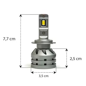 Especificações Cor: Cinza Voltagem: 12 V Tecnologia: LED CSP 3570 (última geração coreana) Temperatura de cor: 4000 K (branco neutro) Potência: 50 W por peça Fluxo luminoso: 5.500 lumens por peça Encaixe: H7 (para uso em farol alto e baixo) Corpo: alumínio de aviação 6063 Refrigeração: sistema duplo (dissipador + cooler) Driver: Canbus externo (ajusta para evitar erros no painel em muitos veículos nacionais) Grau de proteção: IP65 (resistente à água e poeira) Faixa de temperatura de operação: –40 °C a +80 °C Design compacto: peça 20% menor comparado aos modelos convencionais Linha de corte anti-ofuscante para segurança óptica Durabilidade até 10 vezes maior que lâmpadas halógenas tradicionais Dimensões: 8x3x3 cm (AxLxC)