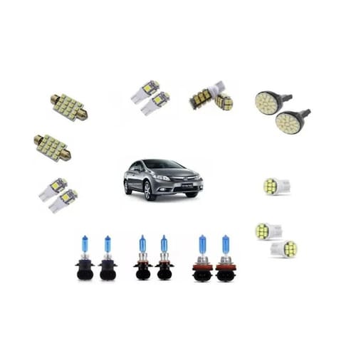 Kit Lâmpadas Super Branca Farol/milha + Led Civic 2013/2014 Descrição Blue Lion Kit Lâmpadas Led + Super Branca Farol/milha Civic 2013/2014 Esta lâmpada emite luz com exclusiva temperatura de cor 8500K, gerando iluminação na cor super branca de tom azulado. O tom amarelado das lâmpadas vai dar lugar ao branco azulado produzindo o efeito xênon. Ela permite que você dirija com mais segurança e conforto, devido a maior visibilidade alcançada através da luz . A Lâmpada utiliza as conexões do seu carro sem precisar de adaptações ou relês, além de ter o mesmo consumo de lâmpadas convencionais. Principais Características: Lâmpada automotiva HB3 H11 H11 Potência: 55W Lâmpada Super Branca com Efeito Esportivo Brilho 30% maior que lâmpadas comuns. Dados Técnicos: Cor de emissão: Branca Potência: 55W Tipo: HB3 H11 H11 Voltagem: 12V Carro Homologado Inmetro Itens Inclusos: 2 - Lâmpadas H11 Super Brancas Farol Baixo 2 - Lâmpadas HB3 Super Brancas Farol Alto 2 - Lâmpadas H11 Super Brancas Farol de Milha Kit Leds: 2 - Lâmpadas Led T10 28 Leds Farolete/Farol 2 - Lâmpadas Torre 5 Led's Luz de Placa 1 - Lâmpadas Torre 5 Led's Luz Porta Malas 1 - Lâmpadas Torre 5 Led's Porta Luva 1 - Lâmpadas Led T10 8 Led's Teto Traseiro 2 - Lâmpadas Led T10 8 Led's Luz de Teto - Modelo: 1 2 - Lâmpadas Torpedo 16 Leds 31mm Luz de Teto - Modelo: 2 2 - Luz de Ré T20 22 Led's Led de Ré NÃO FUNCIONA PARA RÉ DE POLARIDADE INVERSA : legal de 3 meses para defeitos de fabricação. Marca: Não Informado