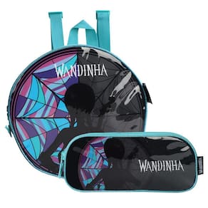 Kit Lancheira Térmica + Estojo Escolar Duplo Wandinha Azul