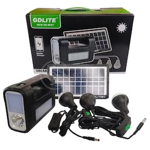 Kit Lanterna Placa Solar Carregador Portatil Energia Emergência Painel Lampadas Acampamento Camping Gdlite -A energia solar fornece corrente contínua para iluminação e carregamento de dispositivos móveis. Além de ser útil em momentos de necessidade, o sistema solar também é útil para eventos ao ar livre e viagens noturnas. Ele também vem com um painel solar com lanternas, lâmpadas LED e uma Placa solar. -utilizando energia solar renovável, este dispositivo de iluminação é obrigatório durante apagões e situações de emergência. Este dispositivo também é fácil de usar, muito intuitivo e pratico. Também foi comprovado que não há ruído, permitindo que você aprecie as atividades ao ar livre ou a paz e tranquilidade da noite. Características do Produto Cor: Preto Capacidade: 4500mAh Potência: 20w Entrada USB para carregar celulares ou outros equipamentos Material: Polipropileno e Componentes Eletrônicos. Produto 100% autêntico e de alta qualidade Possui indicador de nível de bateria Carregamento Adaptador de Tomada: Bivolt 110/220V - 50 / 60Hz Carregamento também por Placa Solar Entrada: DC 6V Saída: DC 9V Saída USB: 4x 5V = 0,5A Tempo de carregamento: 8-10 horas Tempo de Recarga no Sol: 12hs Tempo de trabalho: 7 à 12 horas A Lâmpada Led É 90 Lumens, A Luz Lateral É 150 Lumens Quantidade de Leds Lâmpada Bulbo: 8 Potência Lâmpada Bulbo: 3W Dimensões Altura x Largura x Comprimento : Medidas Placa Solar: 2 cm x 14 cm x 26 cm Medidas Lâmpada Bulbo: 9cm x 6cm Comprimento Cabo da Lâmpada Bulbo: 3 metros 40 cm Comprimento Cabo Fonte Controle Principal: 50 cm Conteúdo da embalagem 1 Controle Principal Acoplado no Painel , com entradas para Lâmpadas, Fontes, USB, Liga/Desliga. 3 Lâmpadas Bulbo 1 Placa Solar 1 Cabo USB 5 Entradas