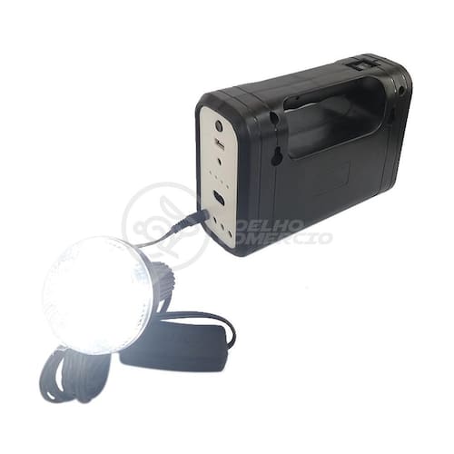 Kit Lanterna Placa Solar Carregador Portatil Energia Emergência Painel Lampadas Acampamento Camping Gdlite -A energia solar fornece corrente contínua para iluminação e carregamento de dispositivos móveis. Além de ser útil em momentos de necessidade, o sistema solar também é útil para eventos ao ar livre e viagens noturnas. Ele também vem com um painel solar com lanternas, lâmpadas LED e uma Placa solar. -utilizando energia solar renovável, este dispositivo de iluminação é obrigatório durante apagões e situações de emergência. Este dispositivo também é fácil de usar, muito intuitivo e pratico. Também foi comprovado que não há ruído, permitindo que você aprecie as atividades ao ar livre ou a paz e tranquilidade da noite. Características do Produto Cor: Preto Capacidade: 4500mAh Potência: 20w Entrada USB para carregar celulares ou outros equipamentos Material: Polipropileno e Componentes Eletrônicos. Produto 100% autêntico e de alta qualidade Possui indicador de nível de bateria Carregamento Adaptador de Tomada: Bivolt 110/220V - 50 / 60Hz Carregamento também por Placa Solar Entrada: DC 6V Saída: DC 9V Saída USB: 4x 5V = 0,5A Tempo de carregamento: 8-10 horas Tempo de Recarga no Sol: 12hs Tempo de trabalho: 7 à 12 horas A Lâmpada Led É 90 Lumens, A Luz Lateral É 150 Lumens Quantidade de Leds Lâmpada Bulbo: 8 Potência Lâmpada Bulbo: 3W Dimensões Altura x Largura x Comprimento : Medidas Placa Solar: 2 cm x 14 cm x 26 cm Medidas Lâmpada Bulbo: 9cm x 6cm Comprimento Cabo da Lâmpada Bulbo: 3 metros 40 cm Comprimento Cabo Fonte Controle Principal: 50 cm Conteúdo da embalagem 1 Controle Principal Acoplado no Painel , com entradas para Lâmpadas, Fontes, USB, Liga/Desliga. 3 Lâmpadas Bulbo 1 Placa Solar 1 Cabo USB 5 Entradas