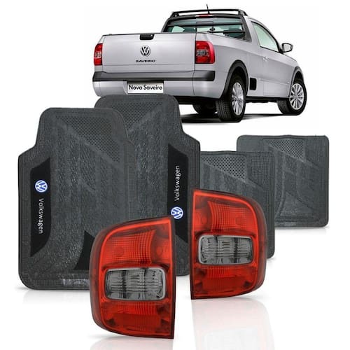 Características: Kit de produtos novo de ótima qualidadeKit contém: Lado direito + esquerdo 2 tapetes dianteiros 2 tapetes traseiros Valor anunciado é referente ao kit.Características lanterna: Lente em acrílico resistente Modelo fumêEspecificações técnicas: Carcaça de plástico Lente vermelha Pisca fumê Ré fumê Não acompanha lâmpadas Não acompanha soqueteEspecificações técnicas tapete: Bordado com logo em hd Fabricado em pvc Mesmo material das montadoras Base emborrachada antiderrapante Canaletas para retenção de sujeira Bordado motorista e passageiro Bordas com cortes para ajustes Modelo universal 4 peçasCompatível com os modelos: Saveiro g5 g6 2009 a 2013Importante: Garantia de 3 meses Não nos responsabilizamos por instalação mal realizada A instalação deve ser feita por um profissional especializado.Atenção: as compras realizadas em nome de pessoa jurídica estão sujeitas à cobrança de icms, conforme protocolo icms 41, de 4 de abril de 2008. Caso você tenha dúvidas sobre o percentual a ser aplicado, consulte a cláusula segunda, 1 do referido protocolo.