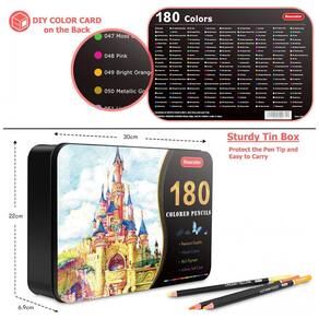 O QUE VOCÊ RECEBE 180 cores vibrantes de lápis de cor numeradas 1 caixa de lata de metal para presente. Conveniente para zenar e manter a cor visível, sem problemas para encontrar as cores. Grandes idéias de presente de lápis de cor para artistas, iniciantes, crianças, meninas. LÁPIS DE CORES PREMIUM Os lápis de cor de arte profissional de 180 cores têm pontas macias, fáceis de afiar, não quebram, racham ou desmoronam. MÚLTIPLAS CORES 180 cores vibrantes individuais numeradas, cores ricas fornecem coloração suave, fácil mistura e sombreamento, ilustrações coloridas Perfeito para desenhar, esboçar, livros de colorir para adultos. METAL TIN BOX, DE USAR Materiais inodoros. Com certificado de segurança. Nota Risco de asfixia peças pequenas, não adequadas para crianças menores de 3 anos de idade Marca: Não Informado