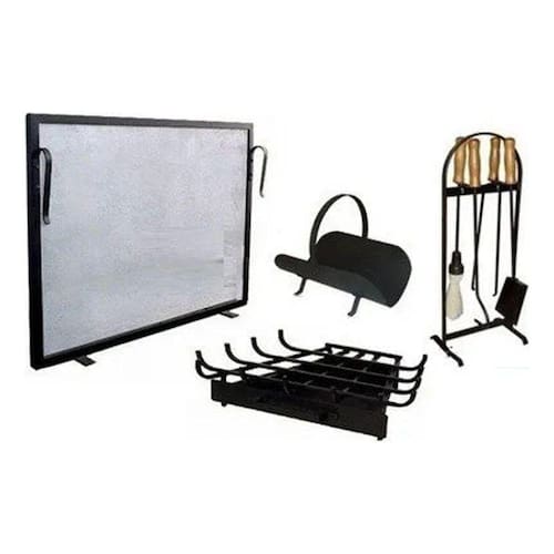 Kit Lareira Tela 80x50 Plusmais Completo Grande Conjunto de peças para lareira Kit Plus Completo Todas as peças em Ferro Fundido, com pintura resistente ao calor.Descrição do Produto1 TELA PARA PROTEÇÃO DE LAREIRAmedida da tela : 80 x 50 cm1 GRELHA DE CANTO COM GAVETAmedida da grelha: 58,5 x 40 x 28 cm1 Kit de Limpeza c/ Cabo em madeiraacompanha : 1 Pinça, 1 atiçador, 1 Vassourinha, 1 Pá1 Porta Lenhamedida porta lenha: 50cm x 30.Todas as peças em Ferro Fundido, com pintura resistente ao calor.... Produto de ótima durabilidade. Marca: Kulh