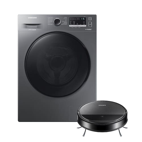 Lava e Seca Samsung WD11A com Ecobubble Inox Look, capacidade de lavagem de 11kg e secagem de 7kg, velocidade de centrifugação de 1400 rpm, tecnologia EcoBubble, motor DIT e sistema Vapor Higiênico.Centrifugação