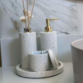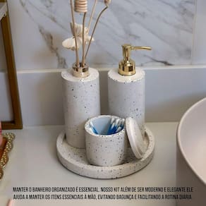 Muitas vezes, os banheiros podem parecer desorganizados e sem estilo, com itens espalhados e sem um lugar específico para cada coisa. Nosso Kit Lavabo oferece uma solução elegante e funcional. Ele inclui uma bandeja luxuosa, uma saboneteira, um porta-cotonetes e um aromatizador. Com esses acessórios, você pode manter seus itens organizados e adicionar um toque sofisticado ao seu banheiro.