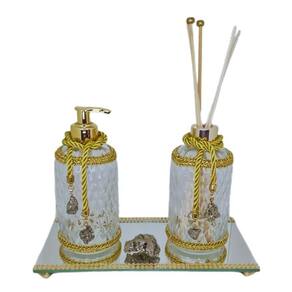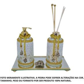 Kit lavabo pedra natural difusor saboneteira-escolha a pedra Cor: pirita dourada Kit lavabo pedra natural difusor saboneteira-escolha a pedra escolha uma das cores disponíveis na opção cor do próprio anúncio. - turmalina negra: é uma pedra natural de proteção, limpeza, purificação e transformação das energias do ambiente. Essa pedra vai te proteger contra o mau-olhado e todas as energias negativas que de alguma forma atingirem o seu lar. Blinda o seu ambiente da sobrecarga energética e dispersa toda a tensão e o do ambiente. - pirita dourada: a pedra pirita é muito conhecida pela sua força em atrair prosperidade e é muito Utilizado por aqueles que procuram sucesso , bens materiais, abertura de caminhos. Traz a energia da prosperidade intensa ao ambiente que se encontra. - ametista roxa: a pedra ametista é o cristal da paz, da evolução espiritual e da conscientização. É uma pedra , pois ajuda a controlar os vícios, os maus hábitos, a dor, a ansiedade e a insônia. Estimula a entrada e aprofundamento em assuntos de espiritualidade, eleva o padrão vibratório da aura, dando equilíbrio geral e harmonia. Traz paz e equilíbrio ao ambiente. - quartzo verde: o quartzo verde é considerado a pedra da cura pelas propriedades calmantes e desintoxicantes de sua cor. Ele é capaz de acalmar o corpo, mente e coração, aumentando nossa paciência, favorecendo o equilíbrio emocional, sensação de bem-estar e também o sono. - sodalita azul: a sodalita é uma pedra de elevação espiritual, meditação e proteção energética. Também fortalece a mente, aumenta a intuição, facilita a meditação. As vibrações da pedra sodalita ajudam a expandir nossa consciência espiritual, acalmam as emoções e equilibram nossa energia mental. O kit lavabo é composto por uma pedra natural turmalina negra tamanho médio além dos pingentes de pedras turmalinas pequenas, bandeja espelhada, saboneteira e difusor, sendo que todas as peças são de vidro e decoradas de forma artesanal proporcionando requinte e delicadeza em peças de beleza única. Enviamos seu pedido em até 24 horas após a confirmação de pagamento Marca: Não Informado