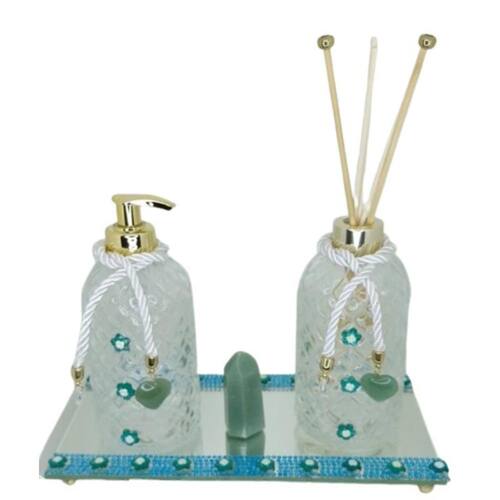 Kit lavabo pedra natural difusor saboneteira-escolha a pedra Cor: quartzo verde Kit lavabo pedra natural difusor saboneteira-escolha a pedra escolha uma das cores disponíveis na opção cor do próprio anúncio. - turmalina negra: é uma pedra natural de proteção, limpeza, purificação e transformação das energias do ambiente. Essa pedra vai te proteger contra o mau-olhado e todas as energias negativas que de alguma forma atingirem o seu lar. Blinda o seu ambiente da sobrecarga energética e dispersa toda a tensão e o do ambiente. - pirita dourada: a pedra pirita é muito conhecida pela sua força em atrair prosperidade e é muito Utilizado por aqueles que procuram sucesso , bens materiais, abertura de caminhos. Traz a energia da prosperidade intensa ao ambiente que se encontra. - ametista roxa: a pedra ametista é o cristal da paz, da evolução espiritual e da conscientização. É uma pedra , pois ajuda a controlar os vícios, os maus hábitos, a dor, a ansiedade e a insônia. Estimula a entrada e aprofundamento em assuntos de espiritualidade, eleva o padrão vibratório da aura, dando equilíbrio geral e harmonia. Traz paz e equilíbrio ao ambiente. - quartzo verde: o quartzo verde é considerado a pedra da cura pelas propriedades calmantes e desintoxicantes de sua cor. Ele é capaz de acalmar o corpo, mente e coração, aumentando nossa paciência, favorecendo o equilíbrio emocional, sensação de bem-estar e também o sono. - sodalita azul: a sodalita é uma pedra de elevação espiritual, meditação e proteção energética. Também fortalece a mente, aumenta a intuição, facilita a meditação. As vibrações da pedra sodalita ajudam a expandir nossa consciência espiritual, acalmam as emoções e equilibram nossa energia mental. O kit lavabo é composto por uma pedra natural turmalina negra tamanho médio além dos pingentes de pedras turmalinas pequenas, bandeja espelhada, saboneteira e difusor, sendo que todas as peças são de vidro e decoradas de forma artesanal proporcionando requinte e delicadeza em peças de beleza única. Enviamos seu pedido em até 24 horas após a confirmação de pagamento Marca: Não Informado Ean: 7894135787805