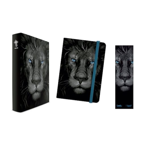 Kit Leão Grafite, composto por Bíblia na versão NTLH, Moleskine para fazer suas anotações e um lindo marca página. A Bíblia NTLH (Nova Tradução na Linguagem de Hoje) é ideal para ações de evangelização. Contém um conjunto de recursos que fazem desta publicação uma excelente opção para o dia-a-dia e o marca página vai te ajudar a continuar sua leitura de onde parou. Uma ótima opção para presentear.