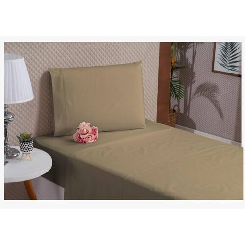 Kit lençol de cima e baixo solteiro percal 180 fios cáqui Jogo de lençol solteiro 3 peças