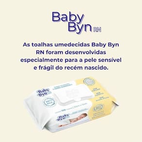 As toalhas umedecidas Baby Byn RN foram desenvolvidas especialmente para pele sensível e frágil do recém nascido por conter formulação enriquecida com extrato de babosa, extrato de rosas brancas e vitamina B5,contribuindo assim para a proteção da delicada pele do bebe, mantenho-a macia e hidratada.Especificações:Mais macias, tecido ondulado;Tamanho da toalha: 15cm x 20cm;Não contém Álcool etílico;Fórmula suave 96% água;Sem Perfume.