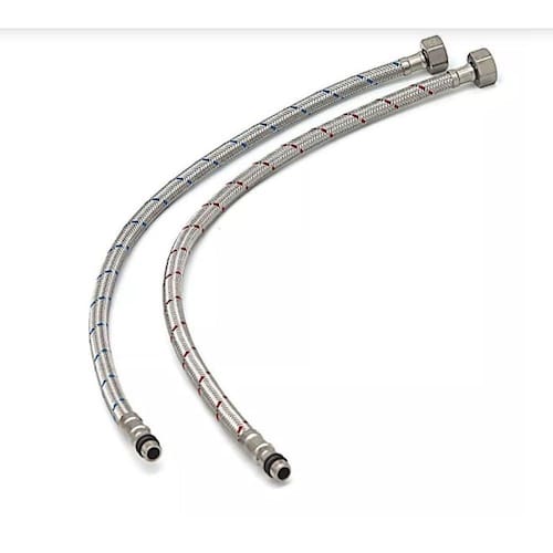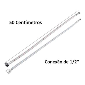 KIT LIG. FLEXIVEL MONOCOMANDO ACO TRANCADO QUENTE/FRIO 45CMProduto utilizado para a ligação entre a rede hidráulica e a torneira, o engate flexível é um equipamento que não pode faltar em sua cozinha, banheiro ou lavanderia. Além disso, este excelente modelo é uma ótima escolha para garantir o bom funcionamento de suas torneiras, pois é produzido em aço inox, um material de grande resistência e durabilidade de alto padrão, lembrando que por ser de Aço Inoxidável a peça é resistente a corrosões e não enferruja.Por ser flexível, adapta-se a qualquer tipo de instalação sendo de fácil manuseio, prático, seguro e resistente as variações de temperatura, podendo ser utilizado para água fria e quente até 90º .EspecificaçõesMaterial: malha de aço inoxSuporta alta pressão de águaBitola entrada água: 1/2" polegadaUtilização: cozinha, tanque ou lavatórioInstalação: em torneiras monocomandoComprimento total do flexível: 50 centímetrosBitola: fêmea de 1/2 polegada e macho de 1/8 polegadaAcompanha 02 unidades de 50 cm