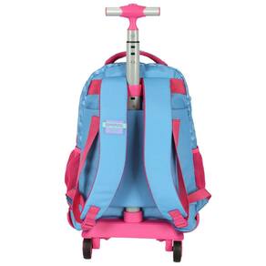 Duplo compartimentos Zíper resistente de alta qualidade tratorado Frente com extampa exclusiva Rodinhas silenciosas e resistentes Base rígida reforçada emborrachada Alça retrátil em alumínio Alças acolchoadas e confortáveis Bolso frontal amplo Fechamento em zíper com puxadores personalizados Laterais com bolso para garrafa em mesh com brillho Material durável Modelagem leve e espaçosa Logo emborrachado Chaveiro exclusivo dimensões aproximadas