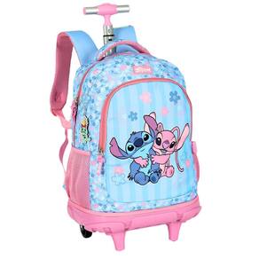 Kit mochila de rodinhas + lancheira térmica stitch & angel - floral azul e rosa, grande e super confortável a mochila de rodinhas stitch & angel é perfeita para quem quer estilo, praticidade e conforto na volta às aulas. Com design floral delicado, cores suaves e os personagens mais amados da disney, ela une fofura com funcionalidade de verdade. Características do produto Mochila de rodinha: