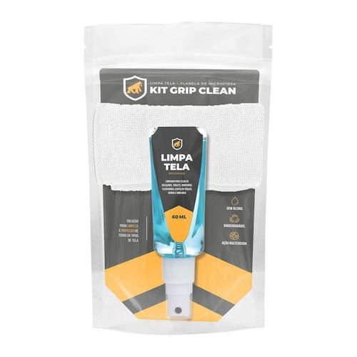 Kit Limpa Telas Bactericida + Flanela - Grip Clean - GshieldIncriveis Acessórios para seu smartphone, cabos, adaptadores carregador veicular, películas de vidro e carregadores, descubra os melhores acessórios para seu cel