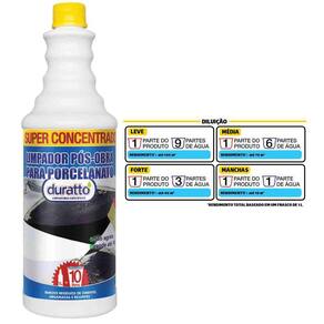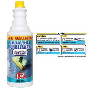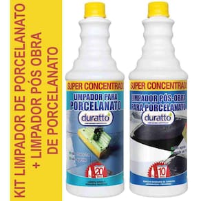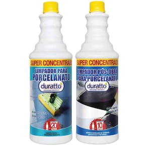 Kit limpador para porcelanato duratto 1l + limpador limpeza. Pós obra para porcelanatos 1 litro Kit com 1 limpador pos obra para porcelanato duratto 1lt + 1 limpador para porcelanato duratto 1lt ======================================== Sobre o limpador pos obra para porcelanato duratto 1ltDescrição - produto para limpeza pós-obra de porcelanatos; - limpa e remove excesso de rejuntes inclusive de base epóxi ; - remove resíduos de cimento, argamassa, gesso e etc; - remove marcas de ferrugem e resíduos impregnados.Observação: aguardar 72 horas após o rejuntamento para utilização deste produto. Embalagem: 1l Rende até 100m / litro Produto concentradoIndicação de uso Usar em porcelanato polido, esmaltado, rústico, gloss e hd.Modo de usar 1- diluir o produto conforme tabela abaixo; 2- espalhar sobre a superfície com o auxílio de uma vassoura; 3- deixar agir por 5 a 10 minutos; 4- esfregar utilizar uma vassoura tipo piaçava, escova ou outro material similiar ; 5- enxaguar para remoção dos resíduos. Repetir a operação caso não remova completamente os resíduos. ======================================== Sobre o limpador para porcelanato duratto 1ltDescrição - limpa sem deixar embaçado; - remove manchas tais como: café, vinho, óleo, terra, etc; - rende muito.Embalagem: 1l Rende até 1000m Produto concentradoIndicação de uso Use em porcelanato polido, esmaltado, rústico, gloss e hd.Modo de usar 1- para limpeza diária pano : A- diluir produto na condição limpeza diária tabela abaixo ; B- umedecer um pano na solução; C- passar o pano úmido no piso; D- passar um pano limpo e seco se necessário.2- para lavar: A- diluir o produto nas condições leve ou média tabela abaixo ; B- espalhar o produto; C- deixar agir por 5 a 10 minutos; D- esfregar e enxaguar.3- para manchas: A- diluir o produto na condição pesada tabela abaixo ; B- aplicar a solução sobre a mancha; C- deixar agir por 5 a 10 minutos; D- esfregar e enxaguar.