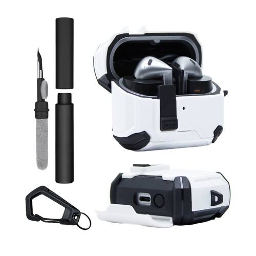 CapaTransforme a proteção dos seus Galaxy Buds com o combo completo da NERDCASE: Capa Airtrek + Kit Limpador 3 em 1. Compatível com Galaxy Buds 3, Buds Pro 3 e Buds 3 FE, a case traz proteção reforçada com estrutura em silicone rígido por fora e interior macio, ideal contra quedas e arranhões. Possui suporte embutido para apoiar o celular e base com imã antiderrapante que garante firmeza na superfície. Acompanha mosquetão e um kit limpador com escova, esponja e ponteira de precisão para manter seus fones sempre limpos. Visual robusto em preto e branco, pensado para quem vive em movimento com estilo.