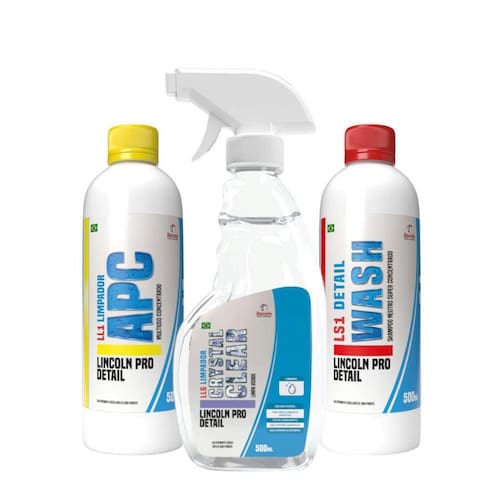 Kit Lincoln para Limpeza Automotiva APC LL1 500ml + Shampoo LS1 500ml+ Limpa Vidros LL6 Crystal Clear 500ml.