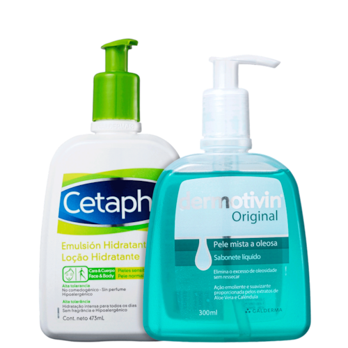 Kit com loção hidratante e sabonete líquido para peles normais, secas, mistas e oleosas. Limpeza e Hidratação Duo limpa e hidrata a pele do rosto e também o corpo, além de controlar a oleosidade sem que a pele fique ressecada.