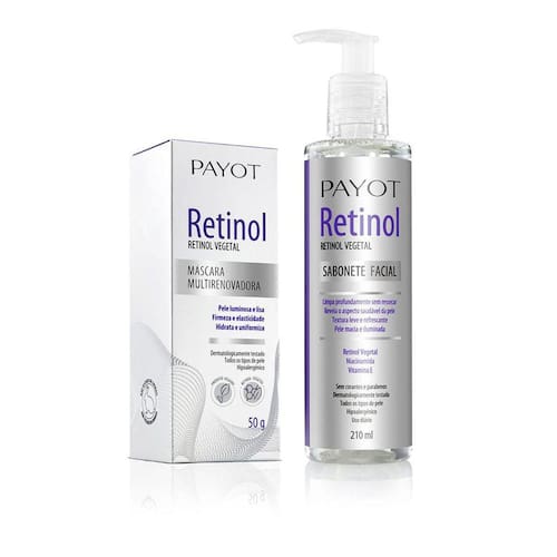 1- Sabonete facial Retinol Payot Ação e benefício: Minimiza a oleosidade. Mantém a pele macia e iluminada ao longo do dia. Ajuda a hidratar, proteger e promover a aparência de uma pele renovada.