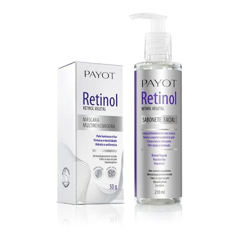 1- Sabonete facial Retinol Payot Ação e benefício: Minimiza a oleosidade. Mantém a pele macia e iluminada ao longo do dia. Ajuda a hidratar, proteger e promover a aparência de uma pele renovada.