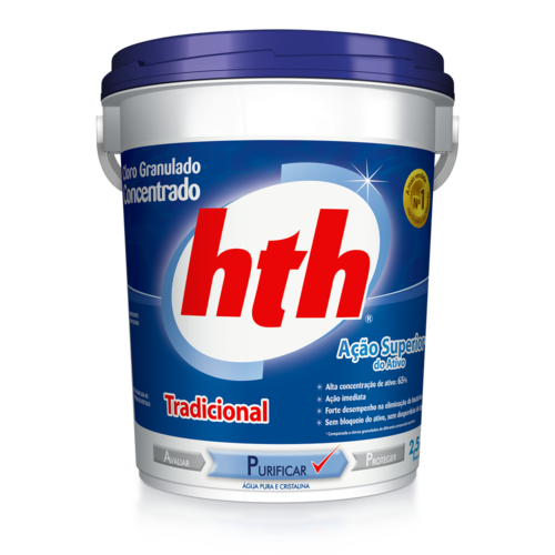 Kit para limpeza e manutenção de piscinas O cloro puro hth possui 65% de cloro ativo e uma fórmula altamente eficaz na eliminação das bactérias da água da piscina. É o cloro mais forte do mercado, pois possui a Ação Superior do Ativo, que significa que todo o cloro fica livre para agir na purificação da água. Em contrapartida, produtos comuns cloros estabilizados agem bloqueando o cloro e isso traz o risco da super estabilização, o que significa que o cloro não vai agir 100%, obrigando a trocar a água, levando ao desperdício. Itens Inclusos: 1 Cloro hth 2,5kg 1 de Ph hth 1 Limpa bordas hth 1 Fita teste hth Marca: Não Informado