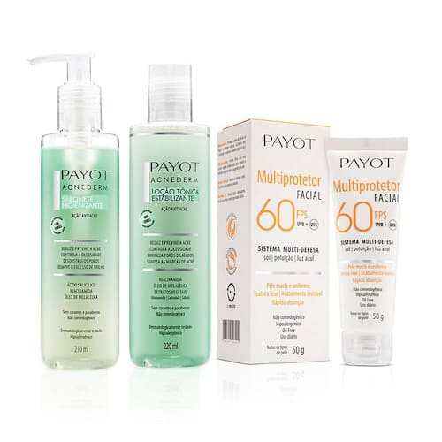 Kit Limpeza e Tonificação Acnederm + Proteção FPS 60 Payot O Kit Limpeza e Tonificação Acnederm + Proteção FPS 60 Payot, contém: