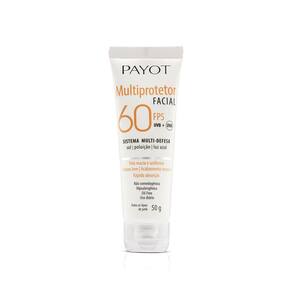 1- Multiprotetor Facial Payot 60 FPS Ação ou benefício: Possui uma combinação de filtros e ativos de alta eficácia que hidrata e protege o rosto dos efeitos nocivos do sol, poluição e luz azul. Com ação antioxidante, previne o envelhecimento precoce. Ajuda na prevenção de marcas, rugas e linhas de expressão. Tom de pele mais uniforme. Acabamento invisível. Marca: Não Informado