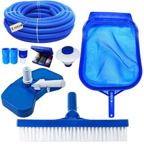 O kit limpeza é indispensável para manter sua piscinas sempre limpa, uma rotina de limpeza faz com que se utilize menos produto químico e economize nas manutenções e sempre terá a piscina pronta para uso Marca: Não Informado